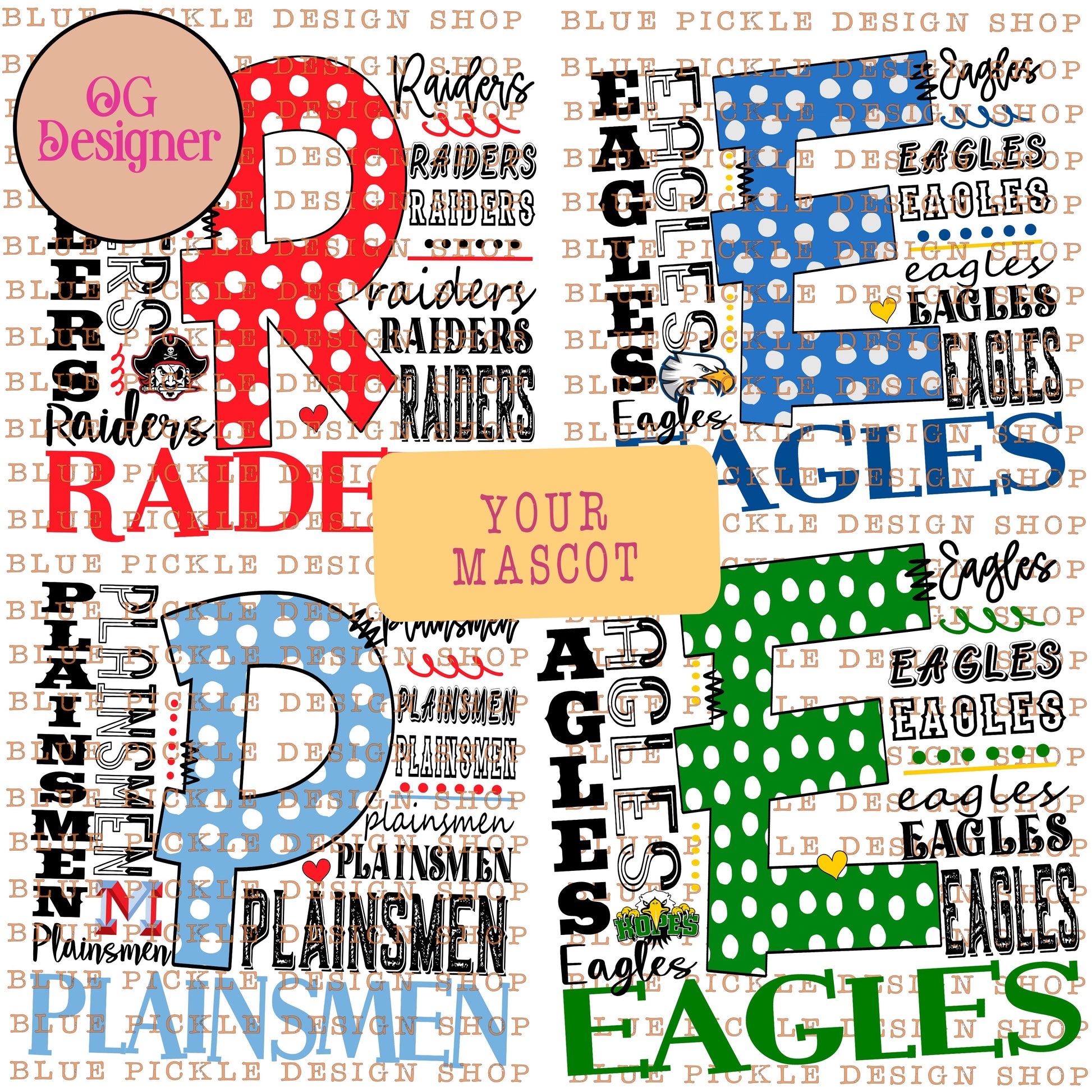 PLEASE EMAIL A SNAPSHOT OR PNG OF YOUR LOGO/MASCOT, MASCOT NAME AND SINGLE COLOR YOU WANT USED (be as descriptive as possible and check your spelling!!) TO: thebluepickleboutique@gmail.com.